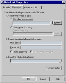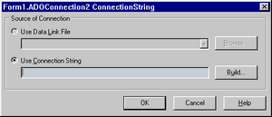 При выборе в редакторе свойства «Use connection string» и нажатии на кнопку «Build...» появляется такой же property sheet, как и при выборе «Open» для Microsoft Data Link файла.