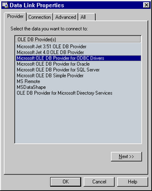 Для «Microsoft OLE DB Provider for ODBC» эта страница выглядит так: