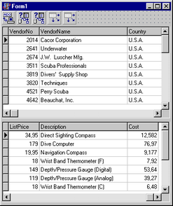 select VendorNo, VendorName, Country, City, State, Preferred from vendorsЗапрос в DetailSQL должен выбирать только те детали, поставщик которых является текущим в MasterSQL. Для этого установим свойство DataSource компонента DetailSQL в значение MasterDS.