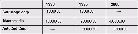 Создать подобную двумерную структуру отображения данных при помощи обычных компонентов со страницы Data Controls Палитры компонентов очень непросто и хлопотно.