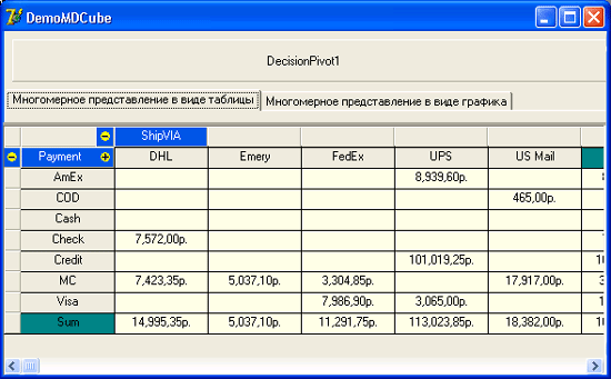 В качестве примера использования многомерного представления данных рассмотрим демонстрационное приложение DemoMDCube (рис. 30.5).