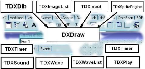 TDXImageList — Позволяет хранить серии DIB, Jpg, bmp-файлов, что очень удобно для программ, содержащих спрайты. Позволяет загружать DIB`ы с диска во время выполнения программы.