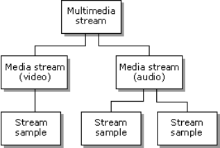 На вершине иерархии находится базовый объект Multimedia Stream, который является контейнером для объектов Media Stream. Объект Multimedia Stream может содержать один или несколько объектов Media Stream. В то время как каждый объект типа Media Stream предназначен для работы с данными какого-то одного типа (видео, аудио и т.п.) - Multimedia Stream - просто содержит методы для обращения к содержащимся в нем объектам Media Stream и не зависит от типа данных.