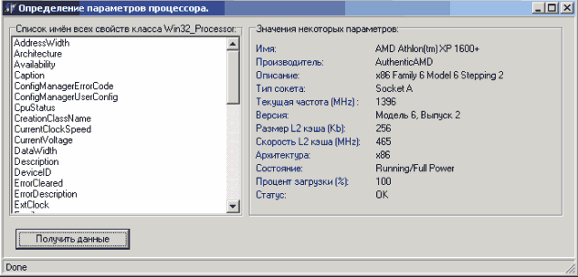 Вот собственно и всё. Получив из объекта SWbemObjectSet экземпляр класса, нам остаётся считать его свойства и воспользоваться его методами.