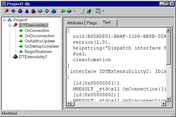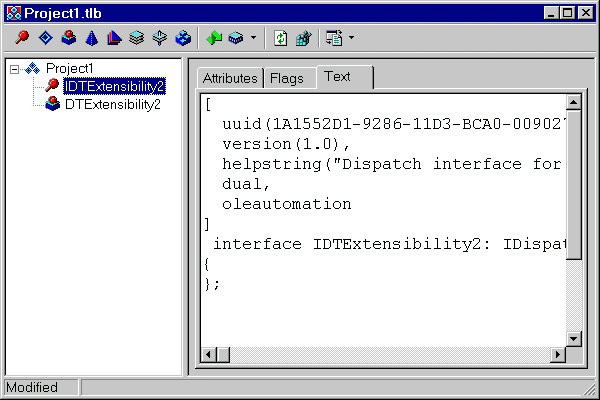 Если вы назвали свой класс не DTExtensibility2, а как-то иначе — скорректируйте название интерфейса. Все остальное, включая uuid, должно быть введено точно так, как это было описано выше.